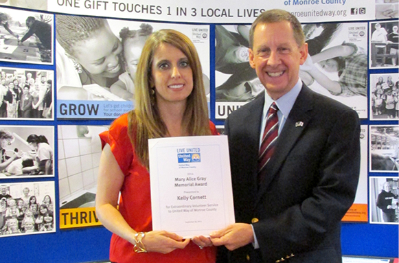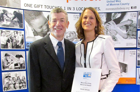 Heidi Schulz, 2015 Mary Alice Gray Award Winner, with Barry Lessow, United Way Executive Director. |